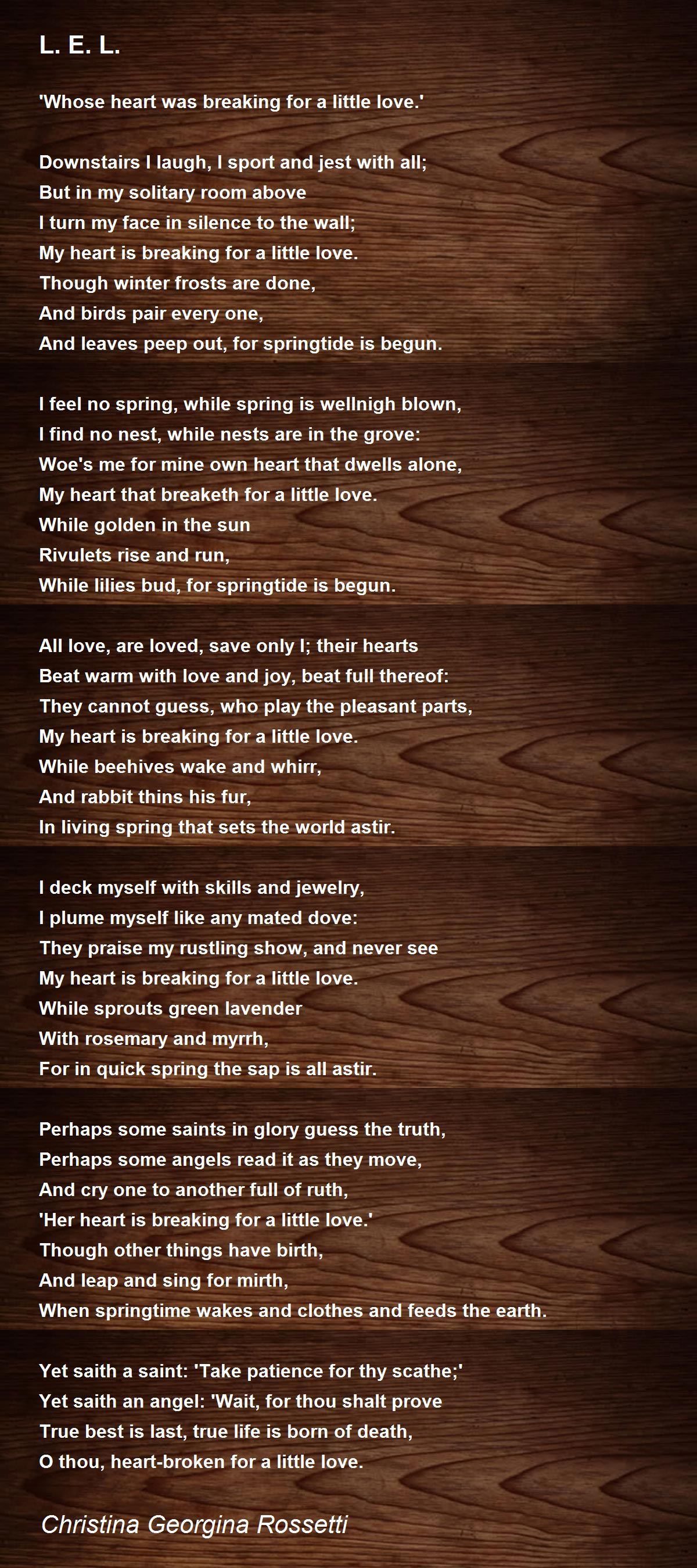 You can also browse other poems on different poem type using the poem types shown on the right side. 2 by christina georgina rossetti. Early life and education christina rossetti was. Sister of artist and poet dante gabriel rossetti.