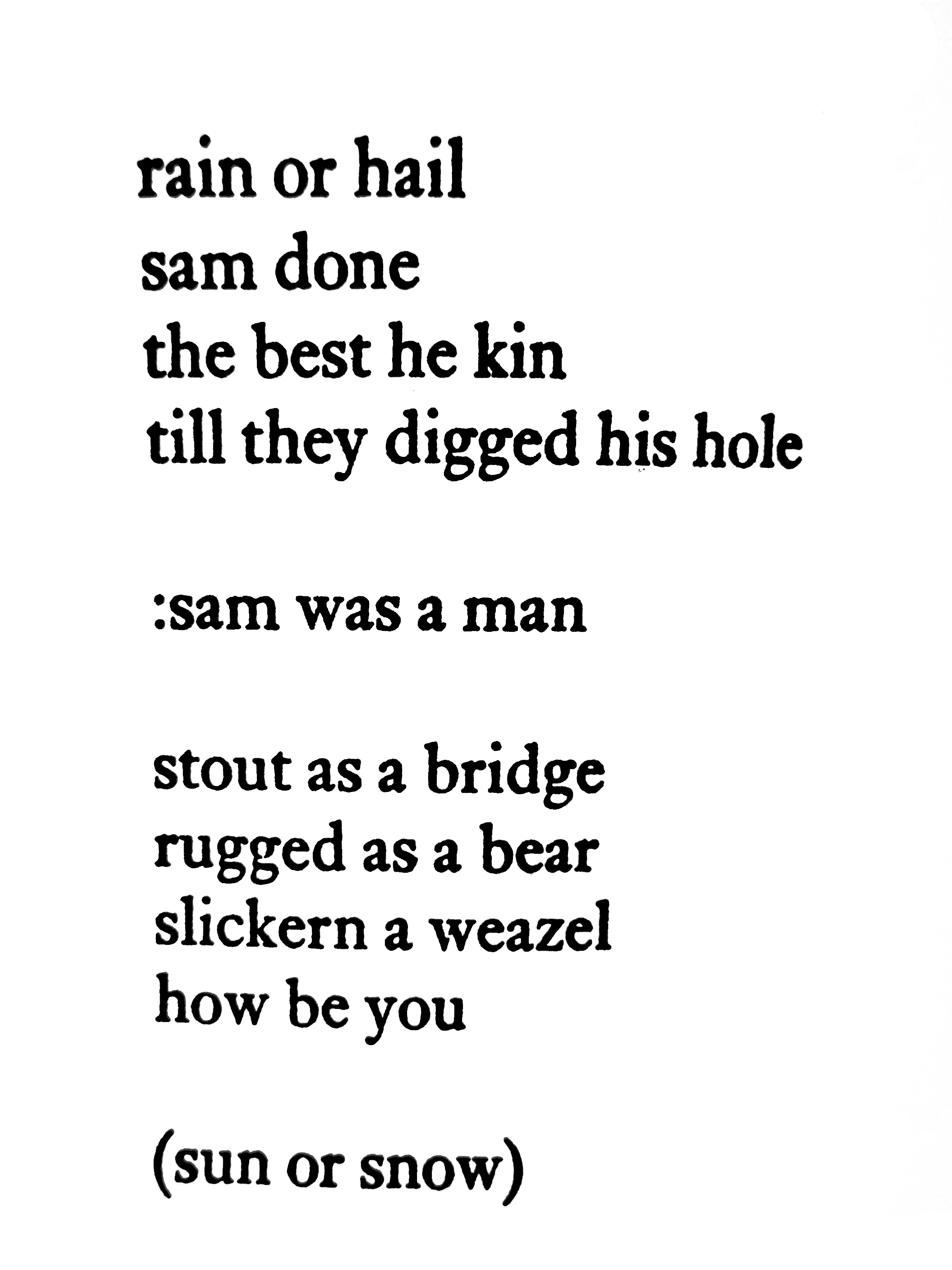 Cummings' poetry often deals with themes of love and nature, as well as the relationship of the many of his most striking poems do not involve any typographical or punctuation innovations at all, but purely some of cummings' most famous poems do not involve much, if any, odd typography or.
